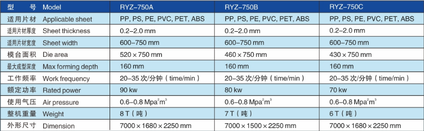 RYZ-750系列全自動液壓制杯機是我司開發(fā)研制的高速度,高效率的全自動塑料容器的成型機。該機適用于生產(chǎn)PS,PP,PVC,PET,ABS等塑料片材